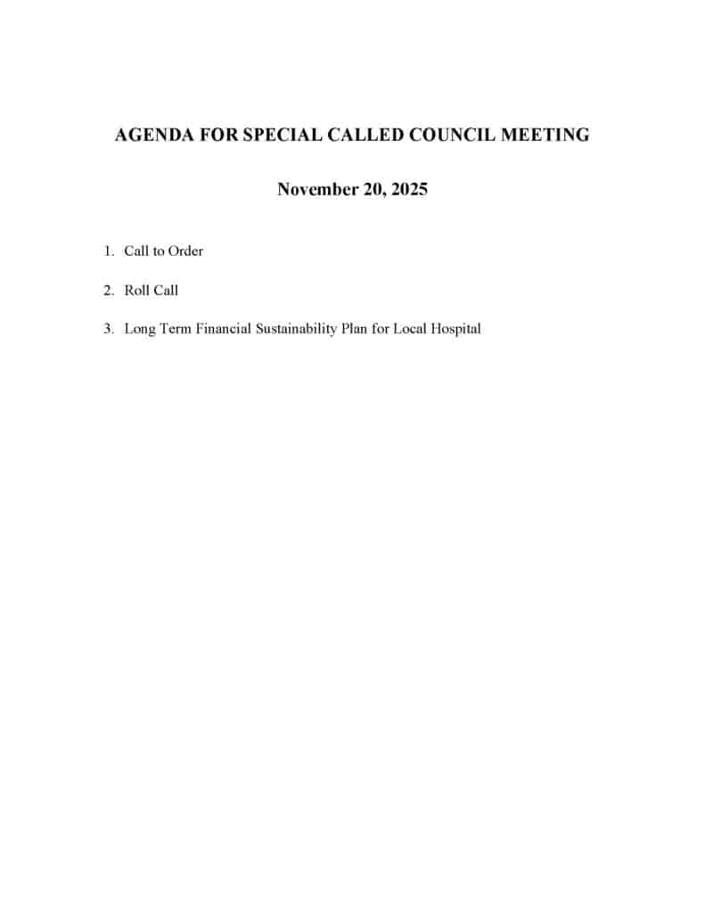 Special Called City Council Meeting Nov. 20, 2025